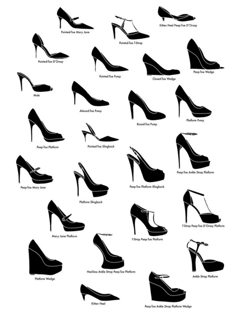 A visual glossary of shoe heel types: