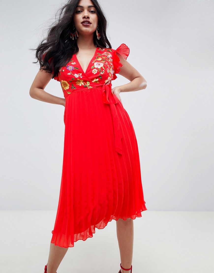 Dress by ASOS DESIGN, Hey, fancy pants, Embroidered floral design, Not just your average print, Cap-style sleeves, Pleated design, Cos ironing is overrated, Regular fit – true to size. Giving you the confidence to express your individuality, ASOS DESIGN interprets major trends, adding a unique ASOS spin from our London design team. All the denim, dresses, jackets and pieces you need – including our fit ranges ASOS Curve, Tall, Petite and Maternity and our ASOS DESIGN Makeup collection – to invent a style that’s all yours, then switch it up again tomorrow, making every day, night and everything in-between as extraordinary as you are. Your life is eclectic and unexpected and, now, so is your wardrobe.