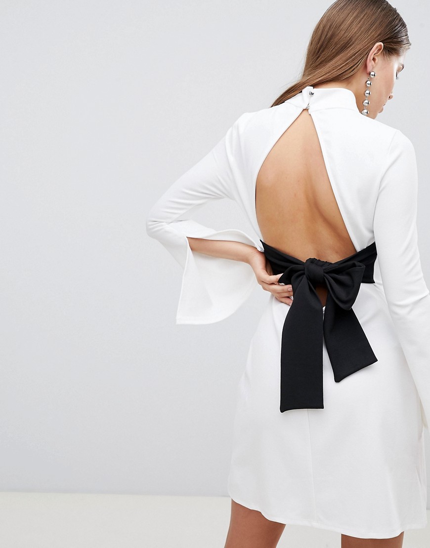 Dress by ASOS Collection, Lightly-textured fabric, High neck with button back fastening, Flared sleeves, Open back, Contrast tie back detail, Regular fit – true to size, Mini dress length between: 86-90cm. Giving you the confidence to express your individuality, ASOS DESIGN interprets major trends, adding a unique ASOS spin from our London design team. All the denim, dresses, jackets and pieces you need – including our fit ranges ASOS Curve, Tall, Petite and Maternity and our ASOS DESIGN Makeup collection – to invent a style that’s all yours, then switch it up again tomorrow, making every day, night and everything in-between as extraordinary as you are. Your life is eclectic and unexpected and, now, so is your wardrobe.