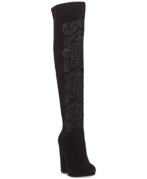 Jessica Simpson’s Grizella boots bring elegant appeal to dramatic over-the-knee height with chic embroidery details and a platform block heel. (Clearance)